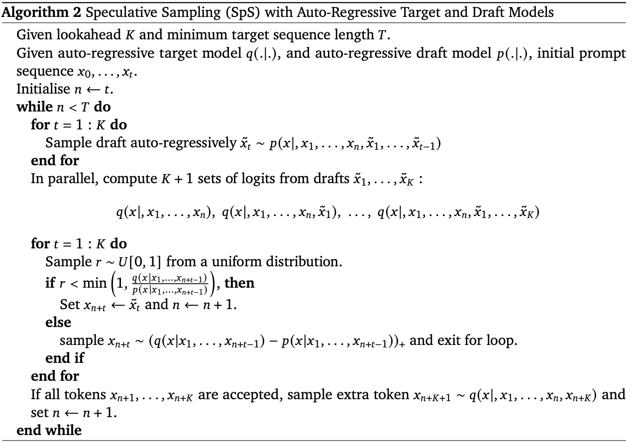 From the DeepMind paper on speculative decoding the algorithm is given as below: